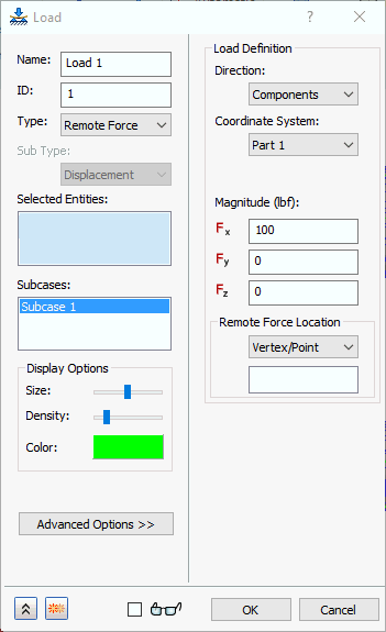 如果将“类型”设置为“远程受力”,对话框将如下所示。