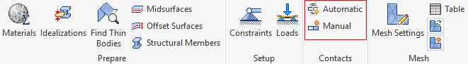 接触类型和容差基于“分析”对话框的“选项”选项卡中的规格。先设置所需的接触参数,然后再执行“自动”命令。