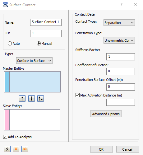 手动定义的接触对将添加到树的“模型”分支中的“表面接触”节点下。如果在创建接触对时以下选项处于活动状态: