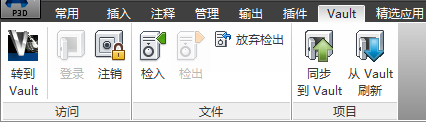 您可以从功能区管理 Vault 登录任务和 Vault 项目文件。