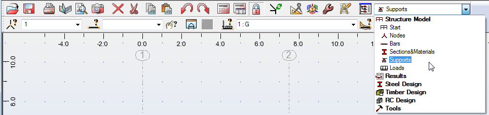 In the Standard toolbar, expand the Layouts drop-down menu and select Supports as shown below or select Geometry > (Supports).