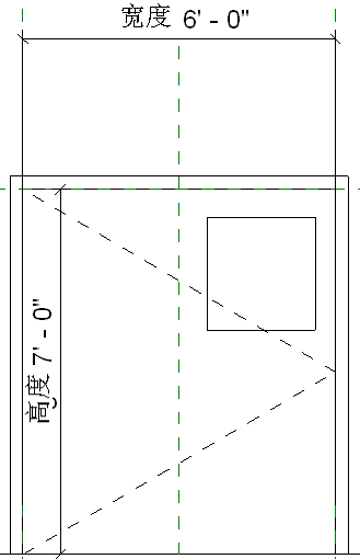 在本例中,窗约束到门的中心线和门嵌板的右侧,而后两者均由参照平面表示。窗的位置相对于这些参照平面而固定。