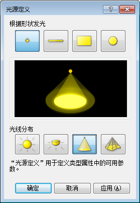 在绘图区域中光源的轮廓形状可能会有变化,具体取决于选定的光源定义设置。