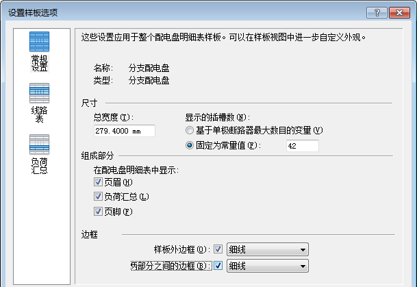 可以自定义配电盘明细表的外观。 可以指定常规外观的设置,以及线路信息和负荷汇总。