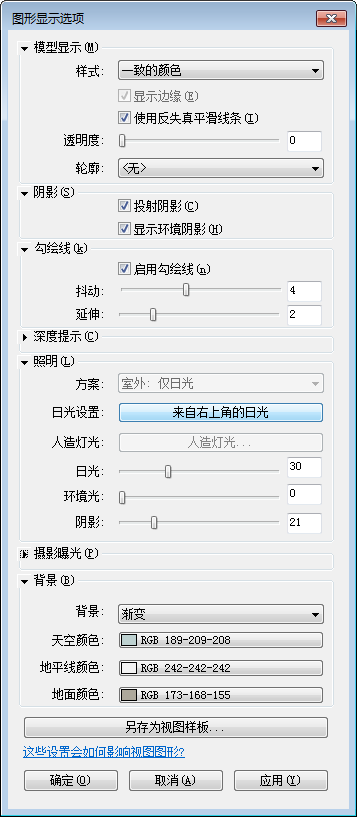 该视图使用以下位于“图形显示选项”对话框上的设置: