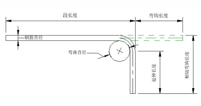使用“钢筋弯钩长度”对话框,可以定义钢筋类型的弯钩长度参数。