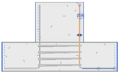 以蓝色亮显的线条是钢筋段可能的约束参照。单击蓝色参照线以指定新的约束参照。尺寸标注将会相应地更改。单击尺寸标注输入特定距离,然后按 Enter 键以应用。