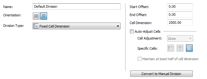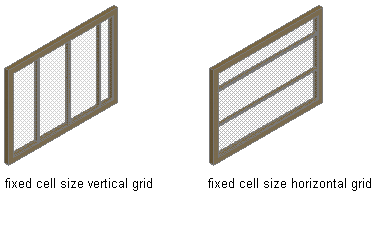 When you specify a fixed cell size in a grid, you can control how the cells of the grid adjust to accommodate any leftover space. This space occurs if the length (or the height) of the door/window assembly cannot be evenly divided by the fixed size of the cell.