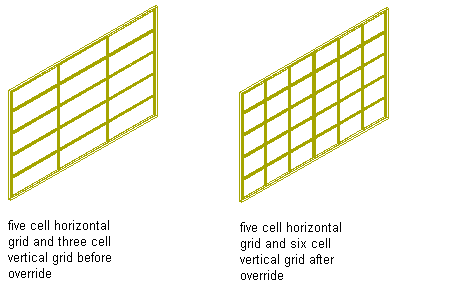 You can override a division in a door/window assembly, thereby changing the grid of the door/window assembly.
