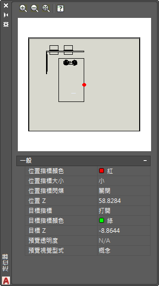 指定目標位置指示標的 Z 座標。您可以在繪製區中指定一點或輸入一個新值,以修改此設定。