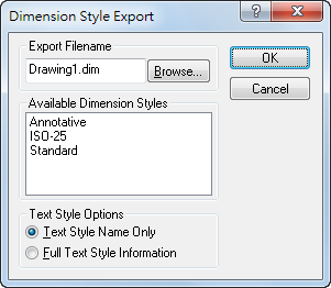 | Text Style Options | 擇一將標註的「完整文字型式」資訊或「僅限文字型式名稱」儲存至ASCII 檔案。 |