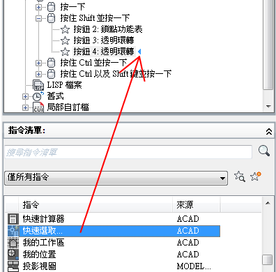 中的自訂」窗格中,按一下「滑鼠按鈕」節點旁的加號 (+) 以展開清單。