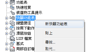 - 在「自訂」頁籤的「<檔名> 中的自訂」窗格中,在「快顯功能表」節點上按一下右鍵,然後按一下「新快顯功能表」。
