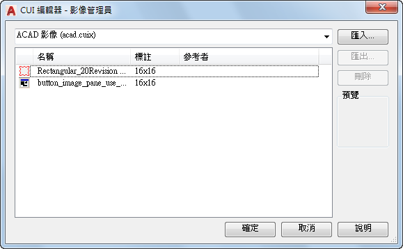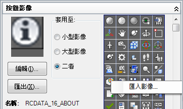 在「按鈕影像」窗格的影像清單上按一下右鍵,然後按一下「匯入影像」。