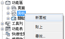 - 在「面板」節點上按一下右鍵。按一下「新建面板」。