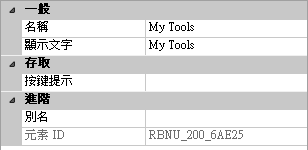 - 在「顯示文字」方塊中,輸入面板在功能區上顯示為面板標題的文字。