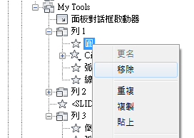 - 在您要移除的指令或控制項上按一下右鍵。按一下「移除」。