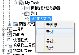 - 在列上按一下滑鼠右鍵,然後選擇「新子面板」或「新收闔面板」。