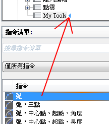 「指令清單」窗格僅會顯示工具列控制元素的清單。