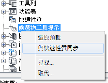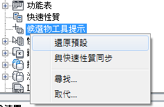 1. 在「自訂」頁籤的「<檔名> 中的自訂」窗格中,於「候選物工具提示」上按一下右鍵。