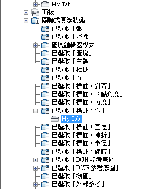 - 將功能區頁籤從「頁籤」節點拖曳至一個功能區關聯式頁籤狀態。