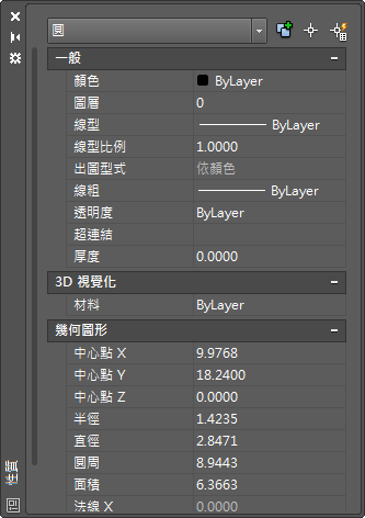 當您在 AutoCAD LT 中檢視 AutoCAD 物件的性質時,可能會無法檢視某些性質。