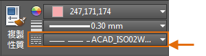 您可以在「性質」選項板變更物件的線型比例來取得所需的外觀。