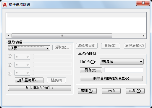 將圖面內一個選取的物件加入至篩選清單中。