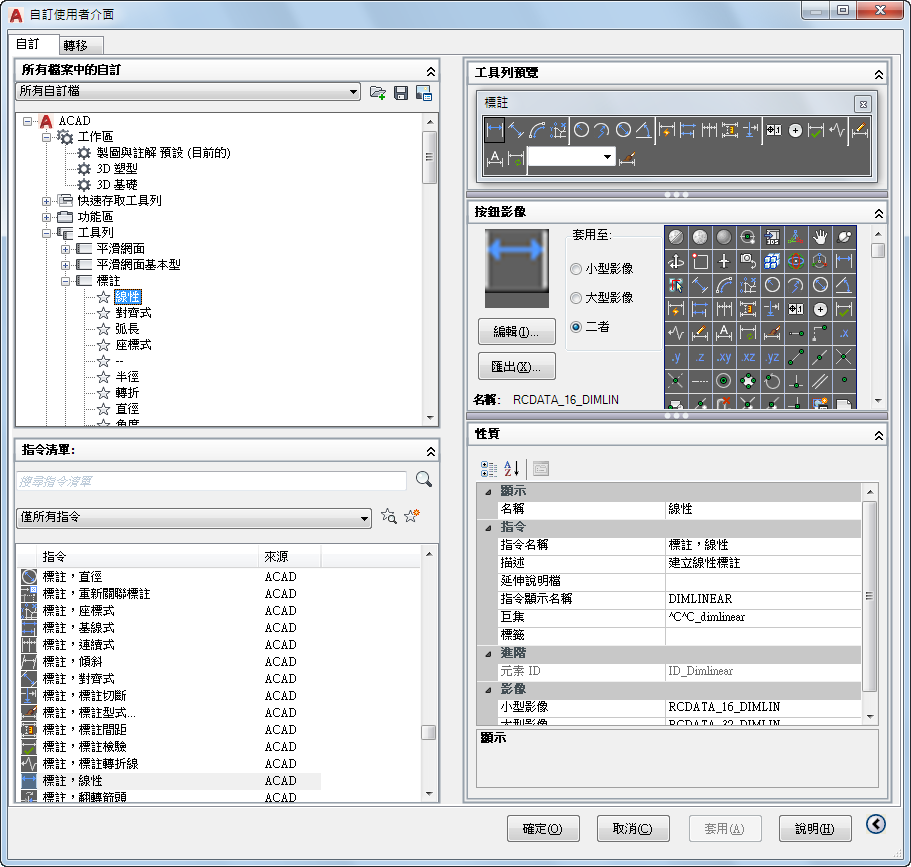 - 大影像 - 指定將指令加入至工具列或功能區面板時要使用的大影像檔。