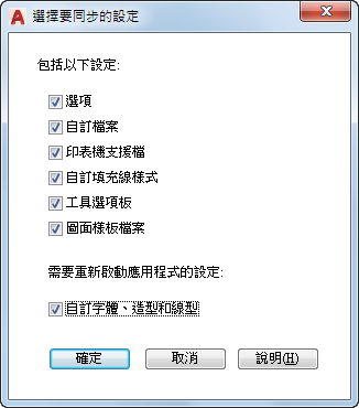 - 同步在「選項」對話方塊中指定的使用者紀要和所有其他設定。