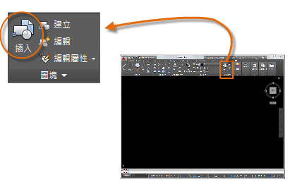 通常這些圖塊都是單獨的圖檔,可能會與相似的圖檔儲存在資料夾中。當您需要將一個圖塊插入至您目前的圖檔中時,可使用 INSERT 指令 (或在指令視窗輸入 I)。