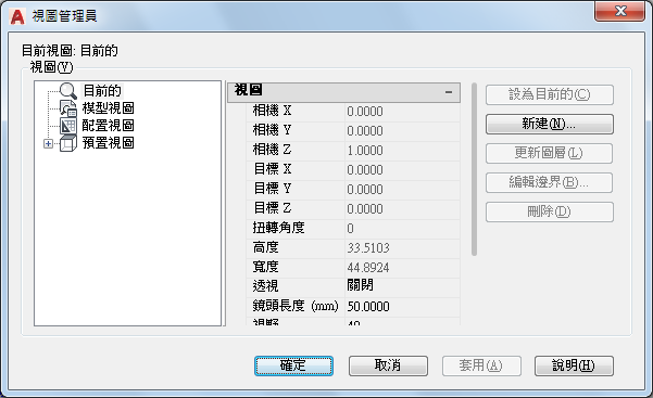 顯示「新視圖/快照性質」對話方塊或「新視圖」對話方塊。