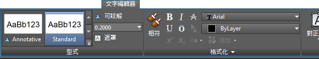 註: MTEXTTOOLBAR 系統變數可控制「文字格式」工具列的顯示。