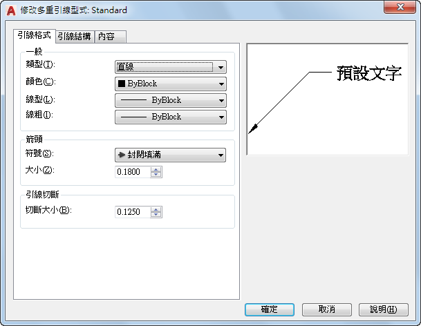 「內容」頁籤 (「修改多重引線型式」對話方塊)