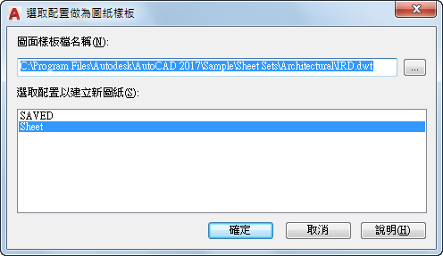 「選取配置做為圖紙樣板」對話方塊