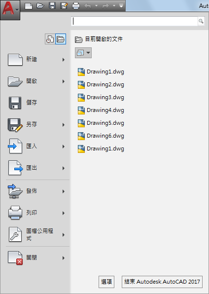 開啟的文件顯示在「目前開啟的文件」清單中,其中最近開啟的檔案會顯示在最上方。選取一個文件的名稱,以使其處於作用中的狀態。