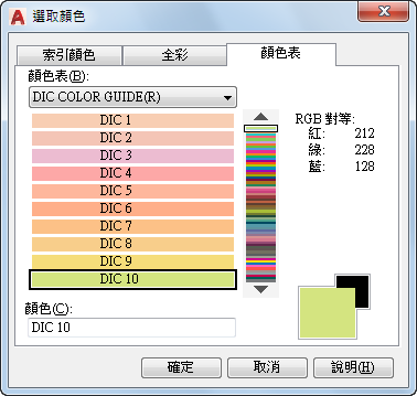 一旦選取顏色表,「顏色表」頁籤便會顯示選取的顏色表名稱。