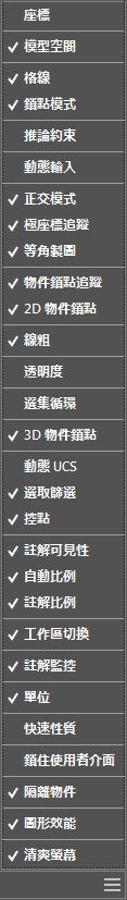 狀態列會提供對會影響圖面環境之工具的快速存取。