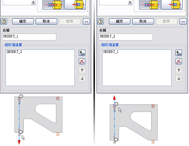 註: 若要在放置時完全約束,請執行以下步驟以在剩餘的特徵上建立 Insert_3 和 Insert_4。