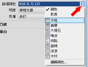 程序貼圖可結合使用外觀材質與凹口貼圖。您可以從顏色或影像編輯點存取它們。