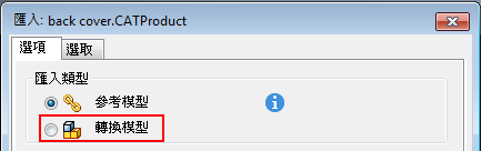 「轉換模型」作業與原始檔案不具有關聯性。因此,執行匯入作業後,對原始檔案的變更不會影響已匯入的零件或組合。同樣,對已匯入的零件或組合的變更也不會影響原始檔案。