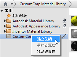在左下方窗格中的新資源庫上按一下右鍵,然後按一下「建立品類」。