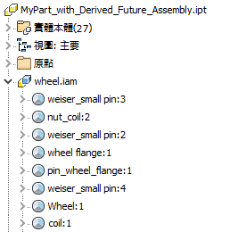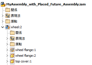 - 瀏覽器會顯示參考的未來檔案。元件節點不同於 Inventor 原生元件。