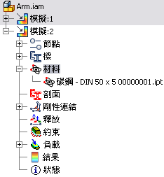 您也可以編輯模擬性質。您可以將靜態分析變更為模態分析。模態分析會提供模態頻率結果。若要變更模擬性質,請在瀏覽器中選取「模擬」節點,按一下右鍵,然後選取「編輯模擬」。