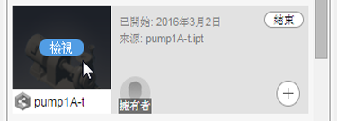 將在 Inventor 檢視視窗中 (Inventor 2017) 或瀏覽器視窗中 (Inventor 2016 R3) 開始設計共用。