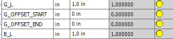 G_OFFSET_END 可標註終止平面和剖面平面之間的長度距離減去 B_L 所得距離,並且在框架產生器中顯示接合形式距離。模型建立期間,您可以使用 0 作為設定。