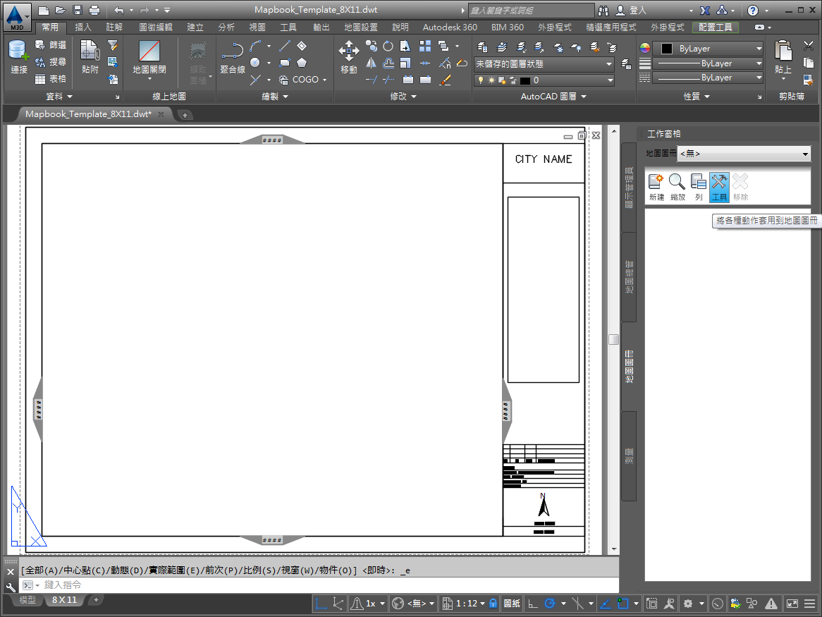定義地圖圖冊樣板並儲存地圖後,即可將地圖圖冊發佈至繪圖機或發佈成 DWF 檔。