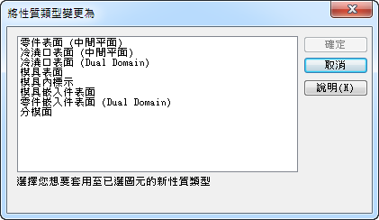 從提供的清單中選取新的性質類型。該清單會根據您是具有「