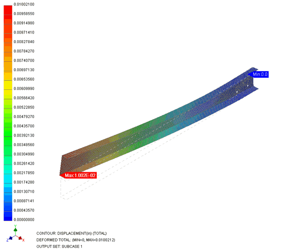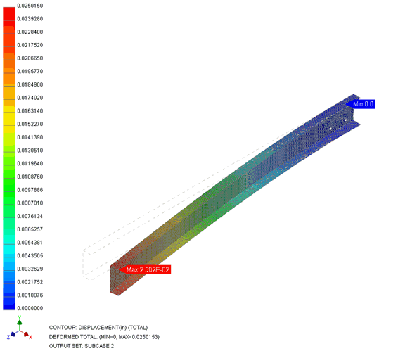 負載下樑的變形和輪廓出圖。為了影像清晰,會關閉負載和約束。