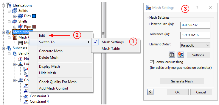 您可以使用兩種方式存取「網格表」,依零件定義網格設定: